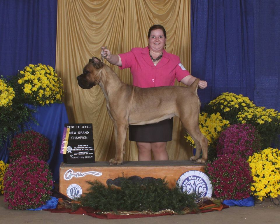 Daughter of Multi Champion Scandifio’s Nino II, Reign and her litter mate Typhoon are part of the foundation of STORM FRONT CANE CORSO. Large bone, correct form and a head to die for. Often mistaken for a male everyone who met Reign loved her. Great with other dogs. She will always be our first GRAND CHAMPION. She has passed away, but we hope to see parts of her again when we breed our neilA to her litter mate Typhoon 2026.