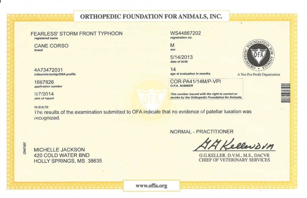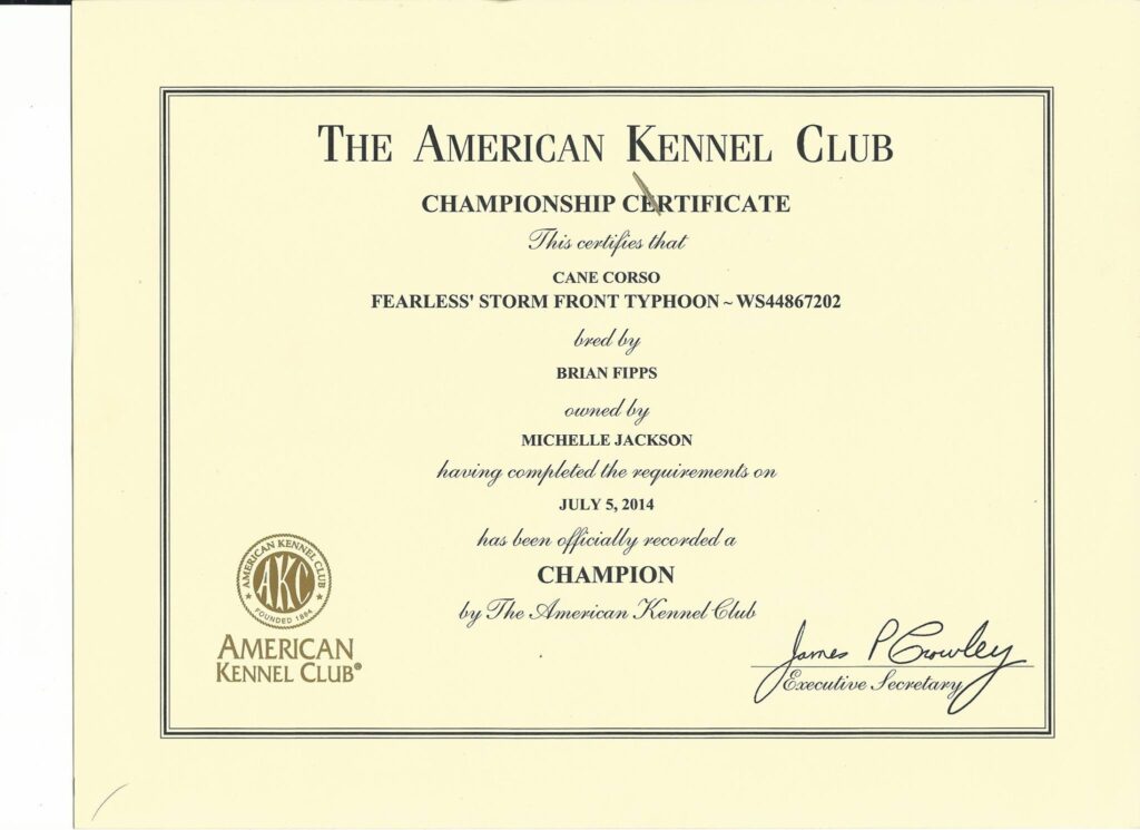 AKC CHAMPION FEARLESS STORM FRONT TYPOON CGC
