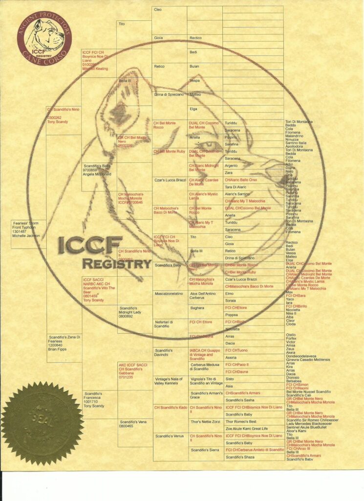 Son of Multi Champion Scandifio’s Nino II, Typhoon and his litter mate Reign are part of the foundation of STORM FRONT CANE CORSO. Large bone, correct form and a head to die for. His temperament made everyone fall in love with him. Great with other dogs and people he knew. He gave us many litters and Champions. Having passed away, we hope to breed our neilA to him using the last of his semen in 2026.